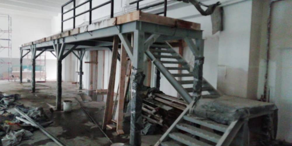 Этажей может быть от 2 до 4. Доступ к верхним этажам мезонин на складе может обеспечиваться не только лестницами, но и лифтами. Сама конструкция в зависимости от материалов, может изготавливаться из облегченного или стального профиля. Обязательное условие таких складских приспособлений являются перила безопасности.